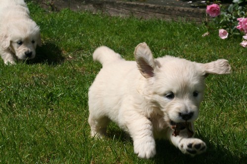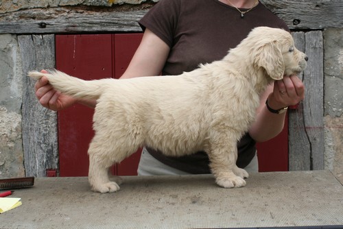 Les chiots partent : * vermifugés en alternant avec un produit différent tous les 15 jours * vaccinés * identifiés par tatouage * avec un carnet de vaccination * inscrit au LOF * une copie de son pedigree * avec un manuel d'instruction pour bien s'occuper de son nouveau compagnon. * un kit chiot( une pochette de rangement des document le concernant et un sac de 3 kg de croquettes Purina Proplan Large Breed). Les chiots ne quittent pas l'élevage avant 8 semaines et demi. |